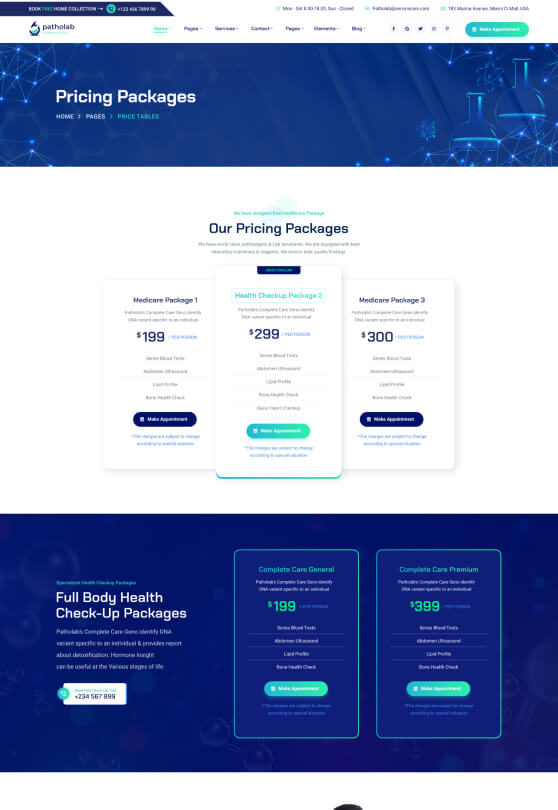 Patholab’s provides 4 package page styles layouts from where you can choose the best one for your website