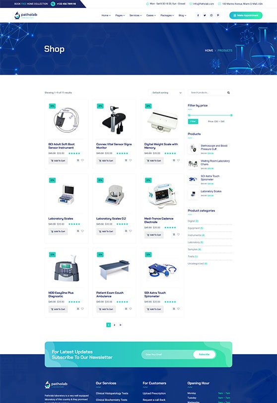Patholab’s provides organized layouts of a complete laboratory website where main focus is providing=ready to use content
